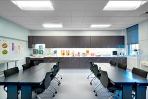 13,563 square feet of the first floor was transformed with LED lighting and new finishes to become high-tech medical labs and classrooms for FTC’s Surgical Tech, Practical Nursing, and Medical Office Assistant programs. A few classrooms have been renovated but remain open for future program growth.