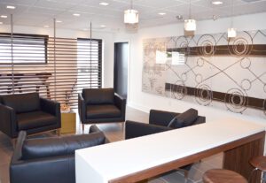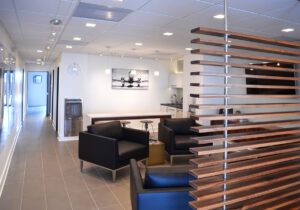 CGA was tasked with the interior renovation of an existing reception area at Leggett & Platt’s Corporate Hangar at Joplin Regional Airport. Our challenge was to create a space that was comfortable with a modern aesthetic.